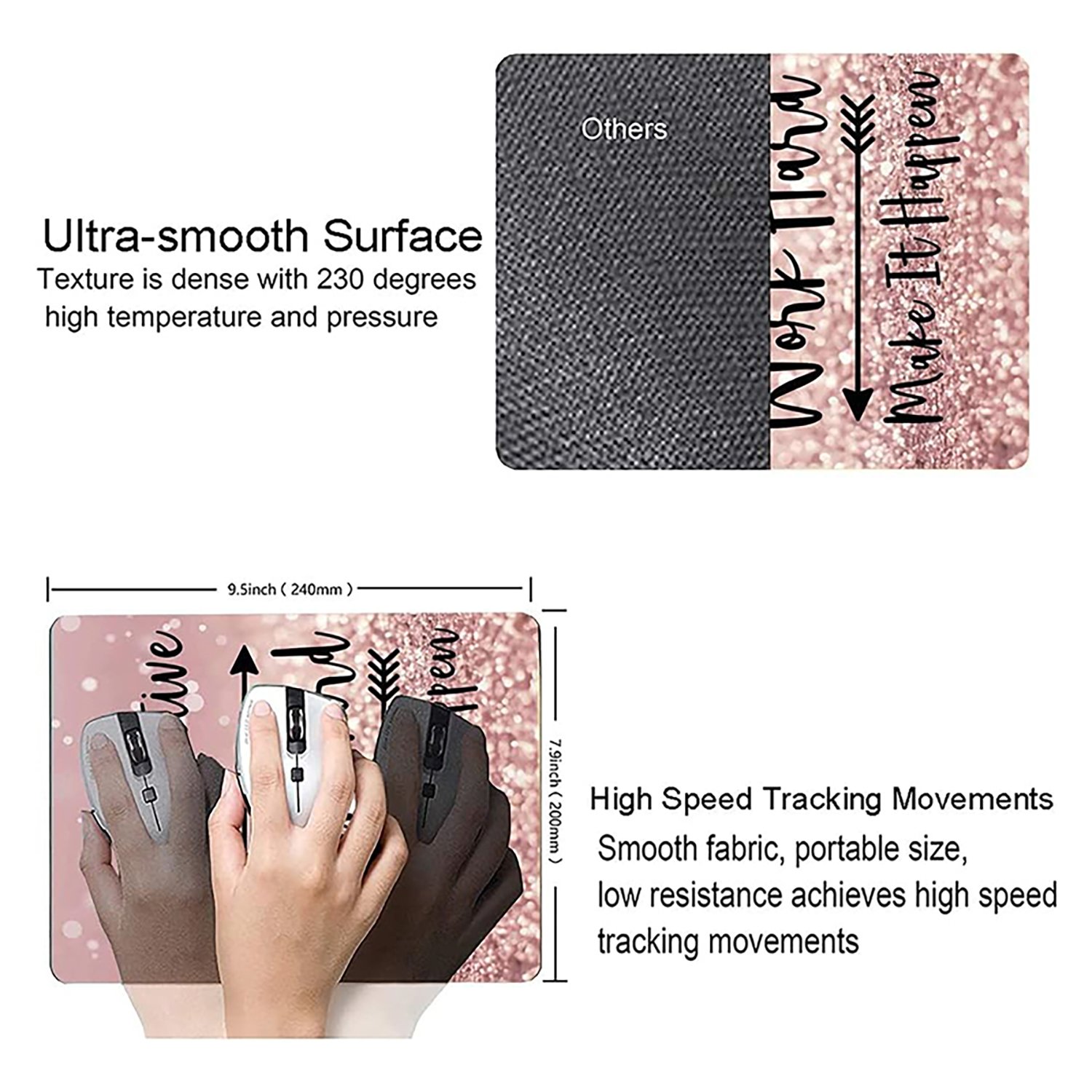 Soft fabric surface and anti-slip rubber base for the office mouse pad.Pretty patterns and bright colors make it vibrant look;Great gift idea.
