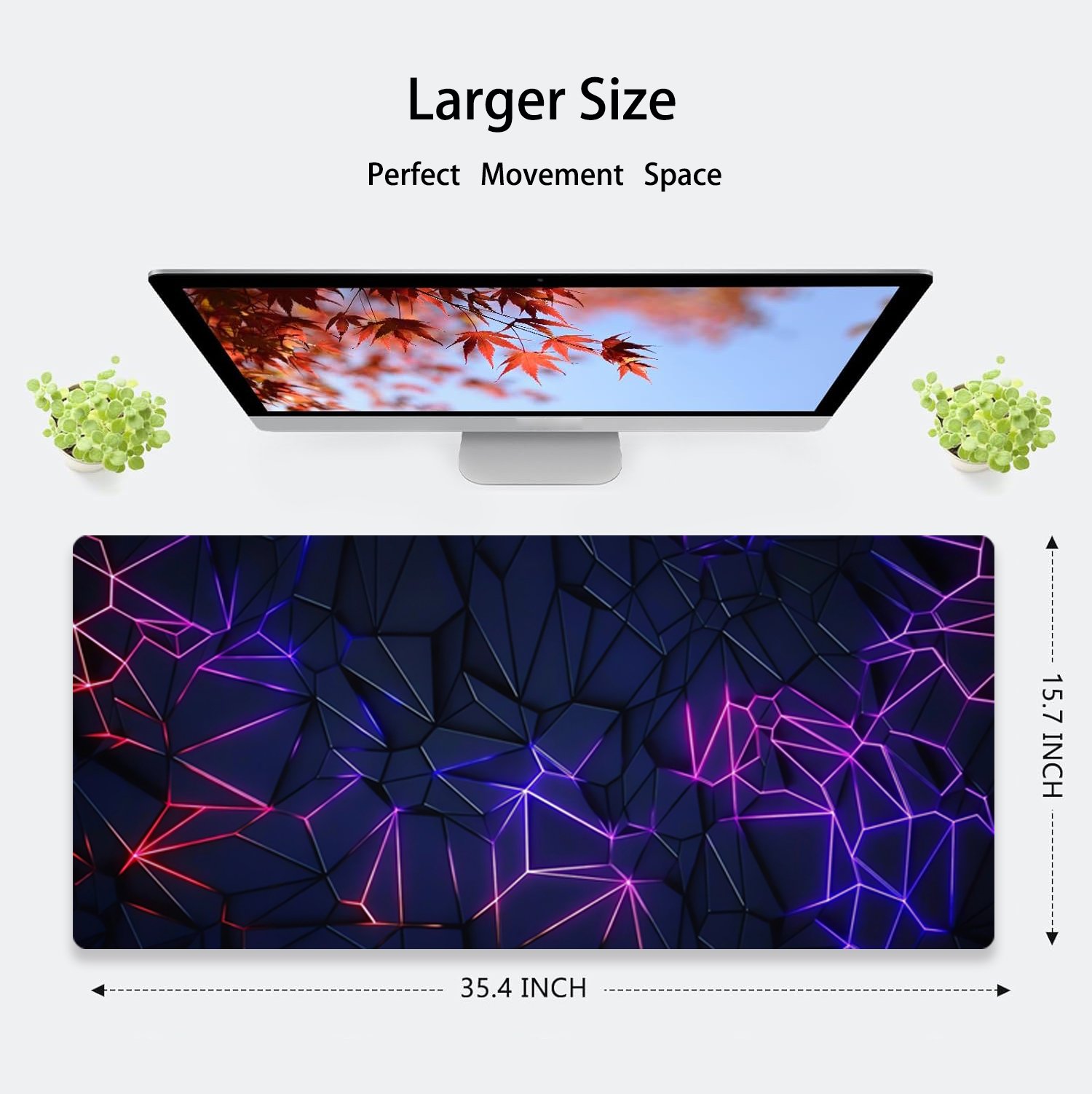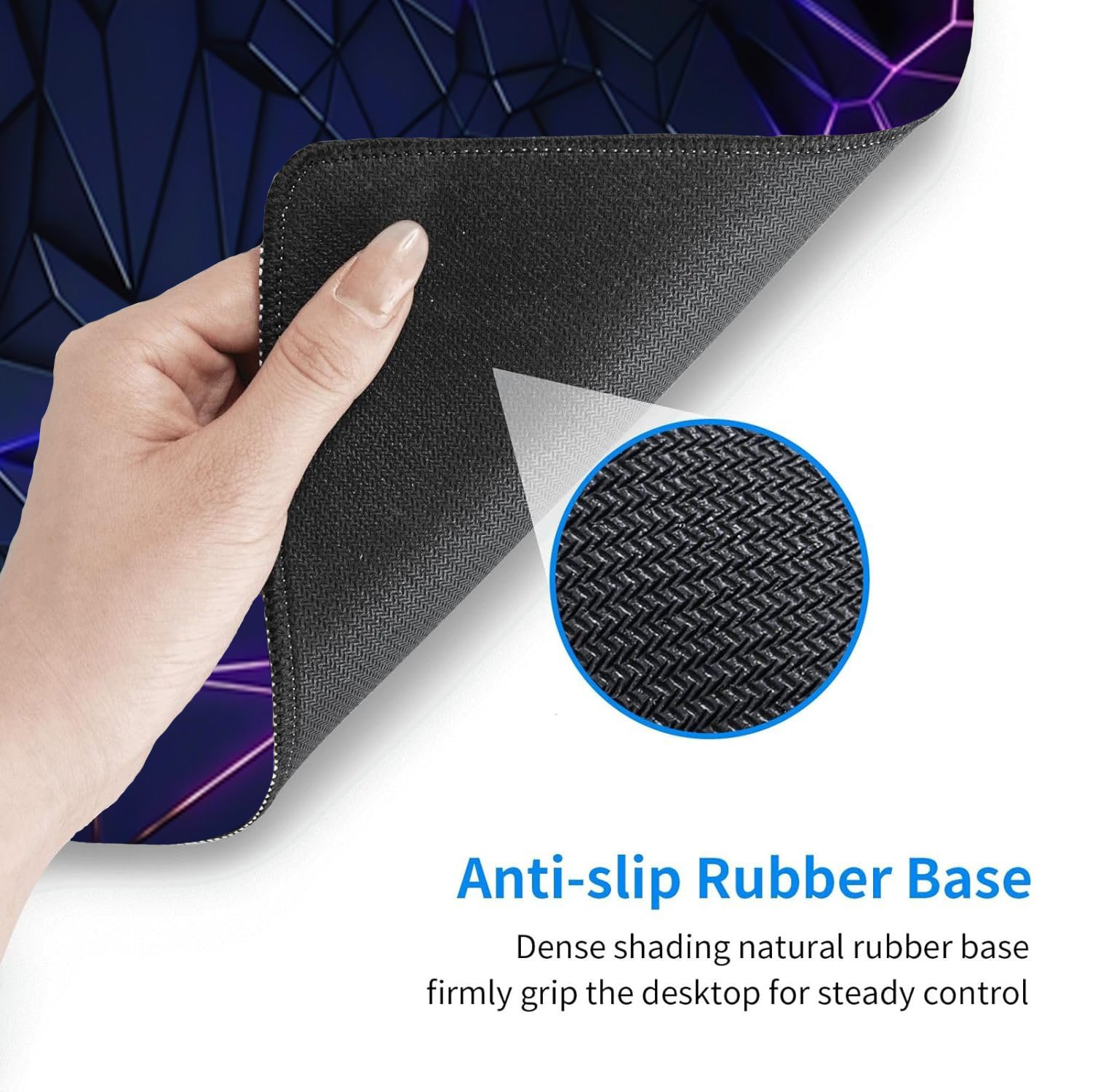 Non-slip Rubber Base: This large mouse pad gaming is made of soft and dense rubber with non-slip texture on the back side; together, the texture and thickness keep the desk mouse pad always firmly in place.