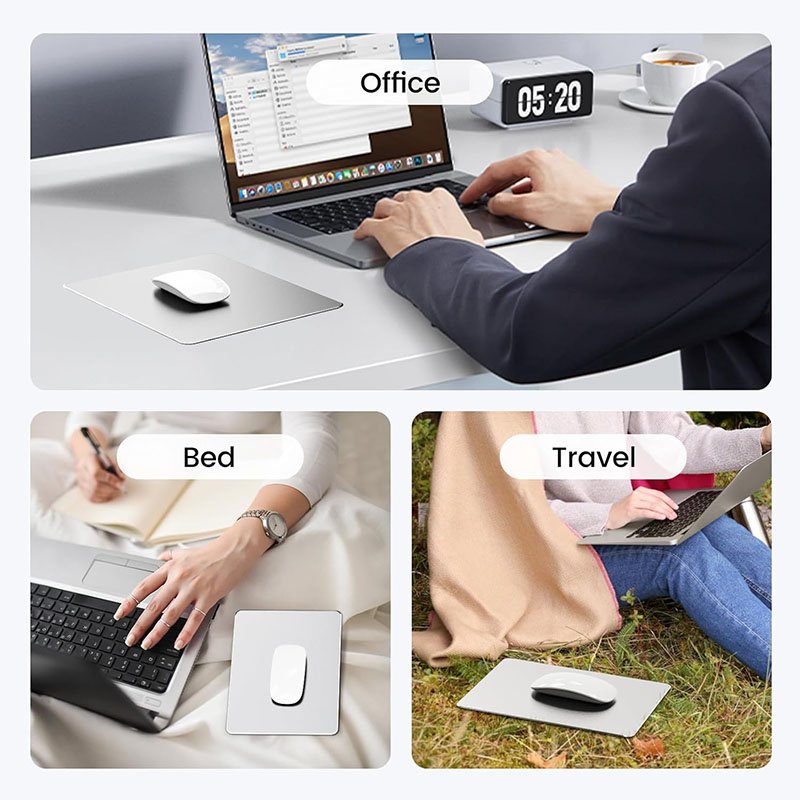 The metal aluminum mouse pad features a premium aluminum design with anodized sandblasting to give the pad a smooth surface, making it the best choice for working, gaming, studying, browsing and more. Meanwhile, the durable aluminum surface allows this metal mouse pad to withstand heavy daily use, and the smooth, water-resistant coated surface is easy to clean.